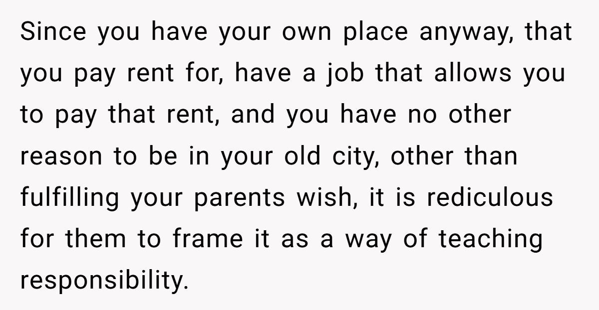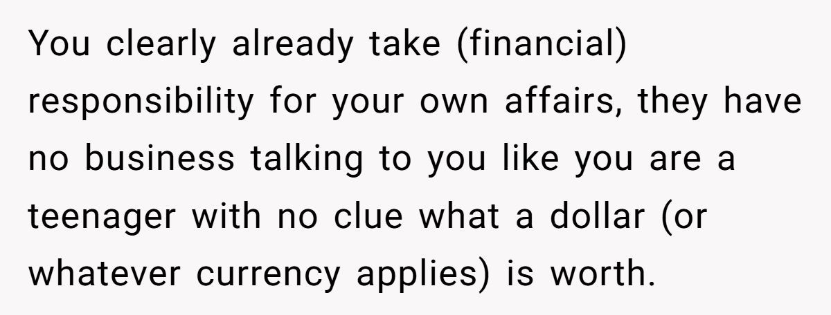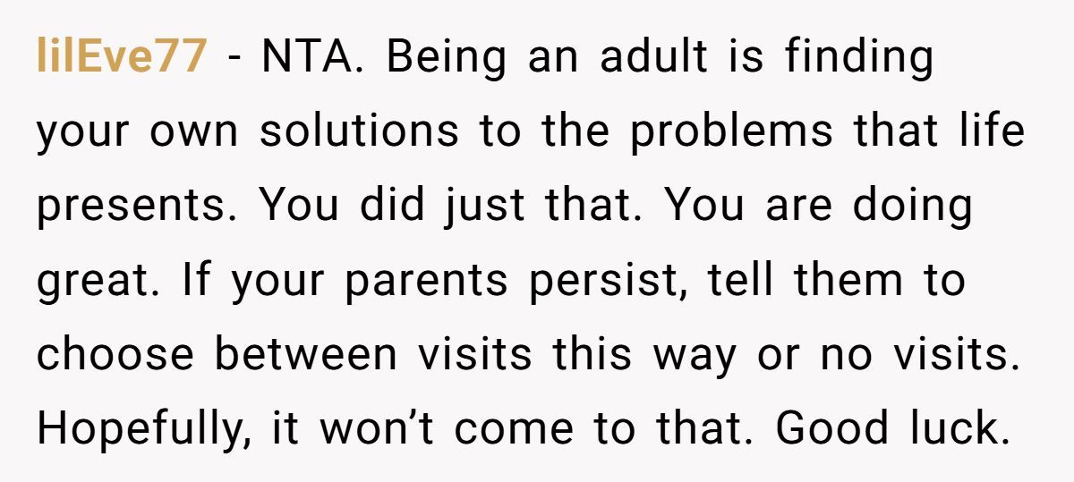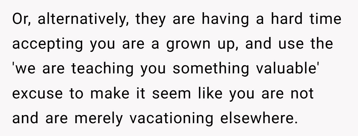 In the end, the Redditor’s workaround wasn’t petty—it was practical. But the bigger issue remains unresolved: when parents try to “parent” an already independent adult, things can get messy.