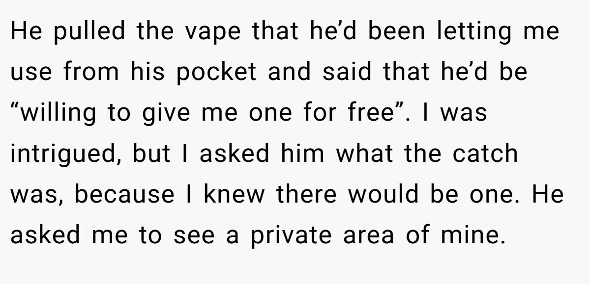 Zoe’s story isn’t easy to hear, and it’s even harder to judge. Her brother’s best friend, someone close to the family, admitted during a casual card game that he had been watching her in private moments for years, starting when she was a teenager. Later, in a one-on-one conversation, he made an inappropriate offer in exchange for a vape.