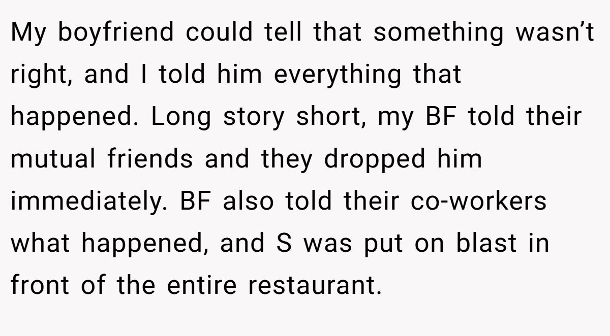 Zoe told her boyfriend and therapist. After that, word spread. The friend lost his job, his friendships, and was no longer welcome in their social circle. But instead of support, Zoe is now facing blame from her own family. They say she went too far and ruined someone’s life.