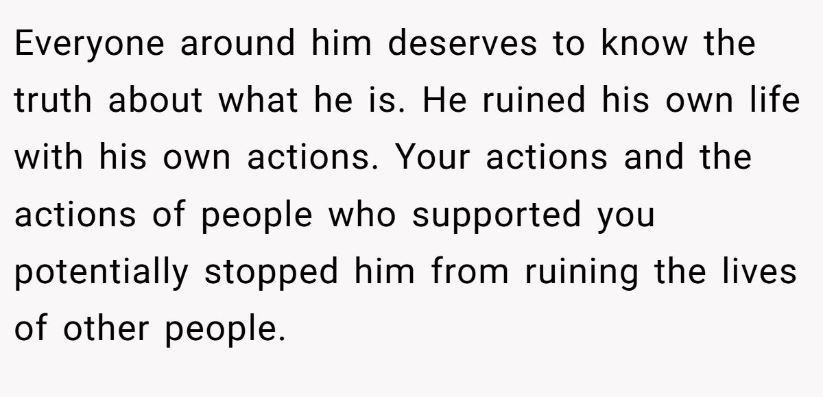 When someone violates trust that deeply, facing real consequences is not cruelty, it’s accountability. Dismissing it as ‘too harsh’ ignores the harm done.