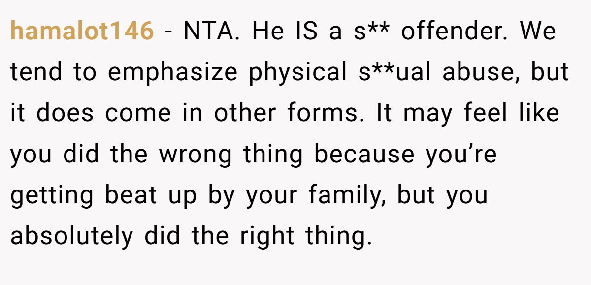 warriorwoman96 voiced what many were thinking—how could Zoe’s family be angry at her, instead of furious at the person who violated her trust for years?