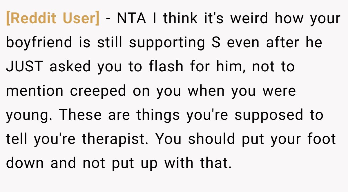 ![She Ruined Her Brother’s Best Friend’s Life - But Was It Justified? [Reddit User] − NTA I think it's weird how your boyfriend is still supporting S even after he JUST asked you to flash for him, not to mention creeped on you when you were young. These are things you're supposed to tell you're therapist. You should put your foot down and not put up with that.](https://dailyhighlight.com/wp-content/uploads/2025/07/43378-27.jpg)