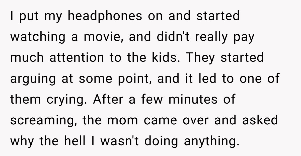 Sure, the mom was stressed and probably embarrassed, but trying to make a stranger babysit her kids wasn’t okay. At the same time, the Redditor’s choice to completely ignore the children when they started crying didn’t help.