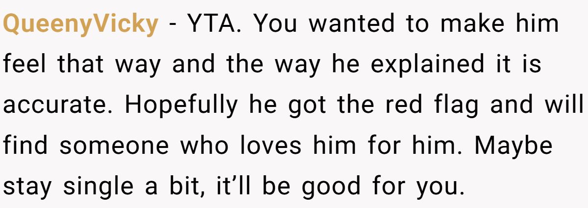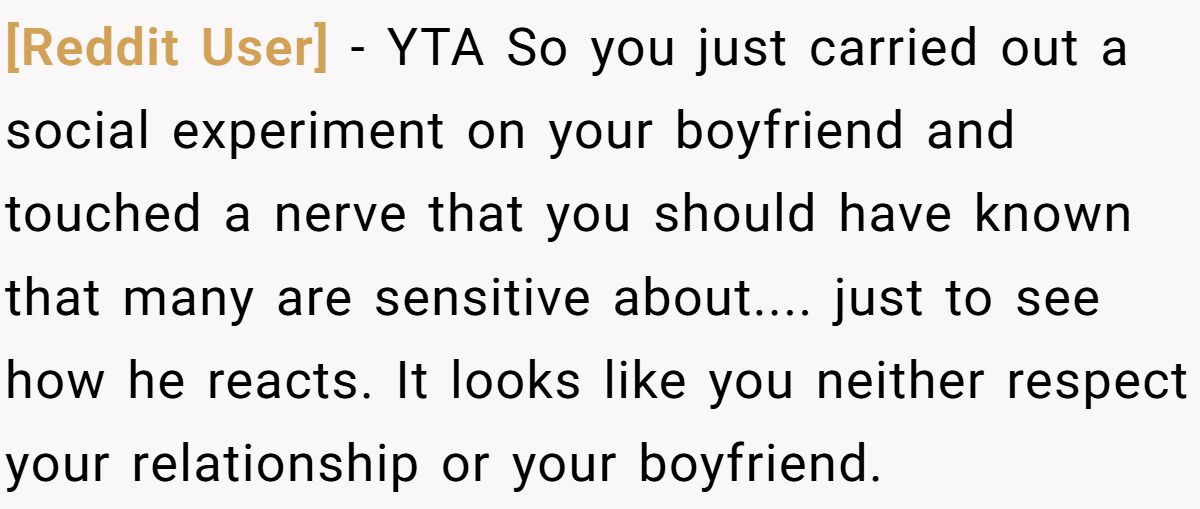 Reddit’s crew was unanimous, calling the Redditor out for a tactless move that shook her boyfriend’s confidence.