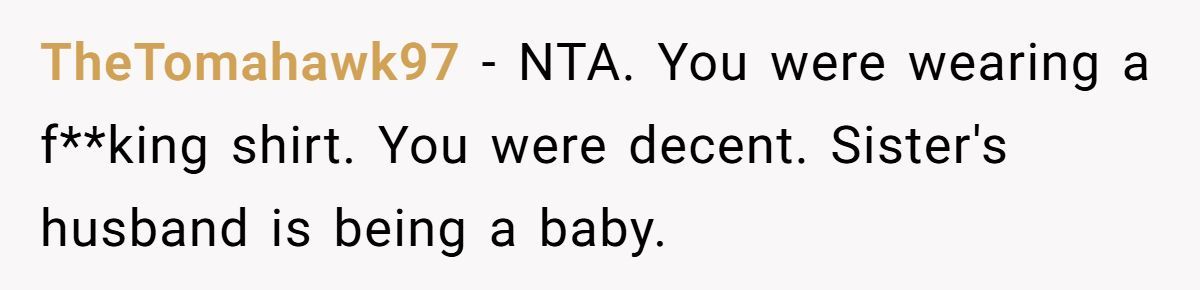 Most commenters agree she’s not the AH, she was dressed, and the brother-in-law overreacted.