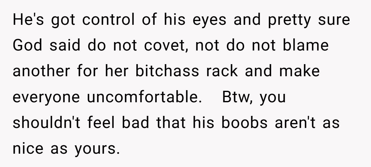So what could’ve been done differently? For starters, if her brother-in-law was that uncomfortable, he could’ve taken the couch. Or—hear me out—not sexualized his wife’s younger sister for wearing sleepwear that millions of women wear at home every day.