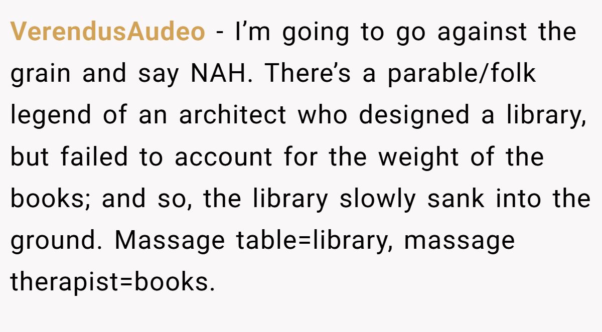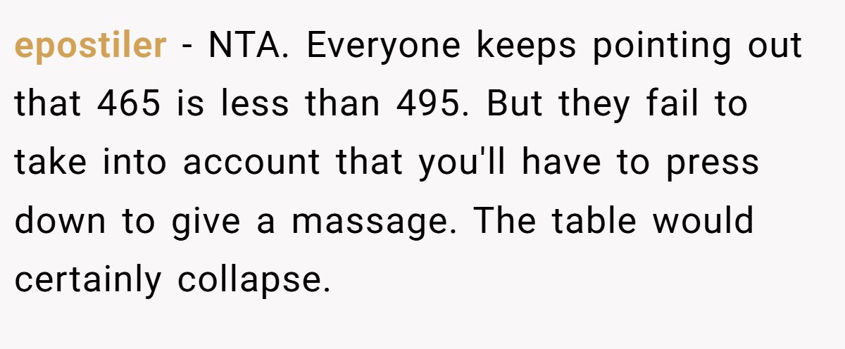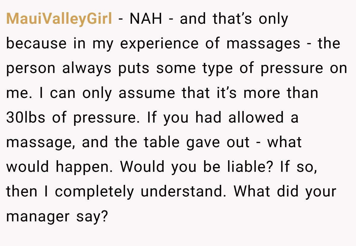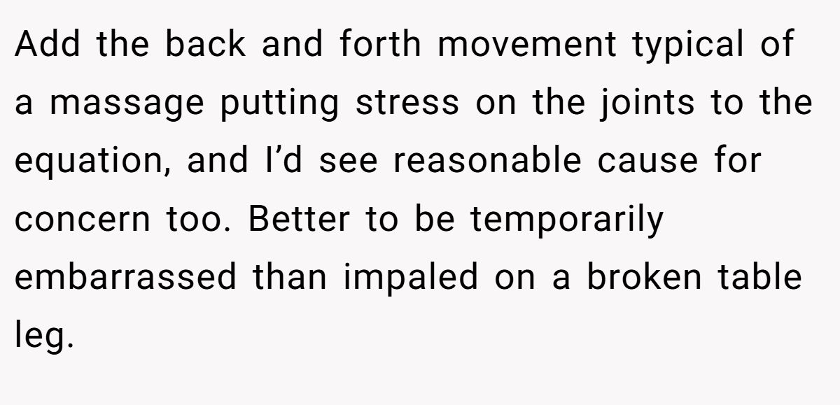 Table could’ve buckled with massage force—Redditor made the right call for safety.