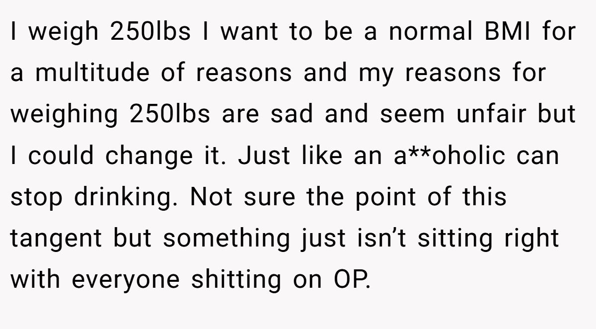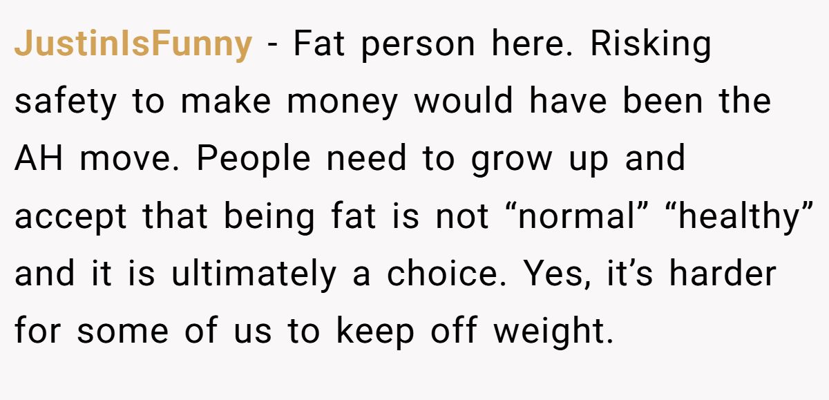 Fat person says safety first—Redditor’s call was tough but right to avoid risk.