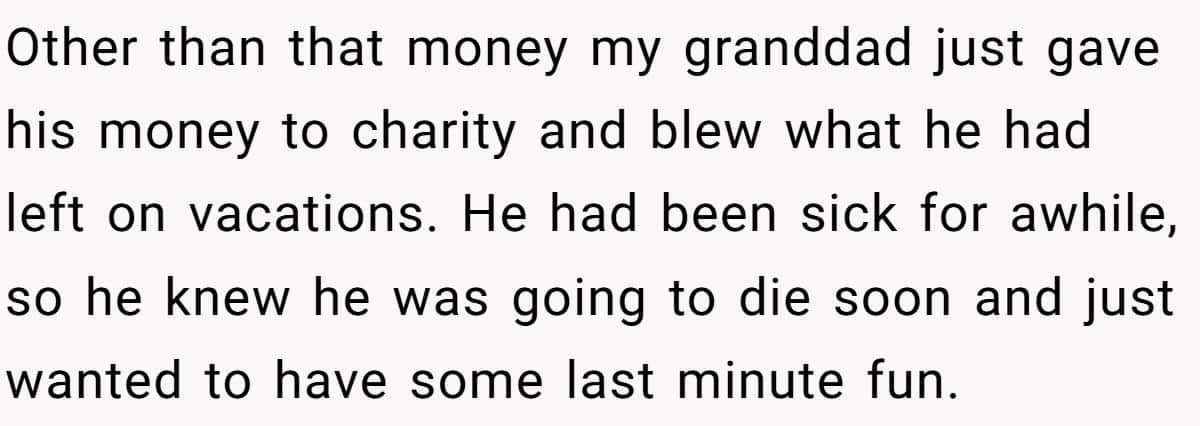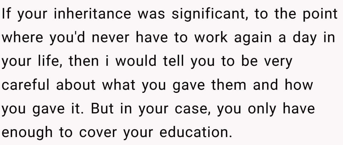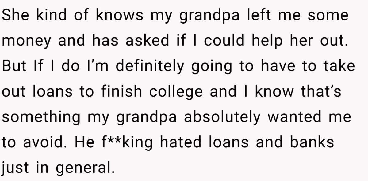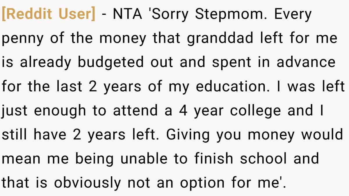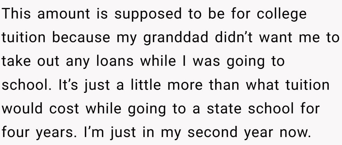 Many Redditors were quick to defend OP’s decision, pointing out that her grandfather explicitly left the money for her education