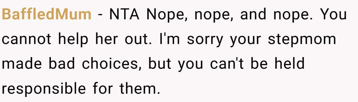 Could this have been less tense? A gentle explanation of the trust’s purpose might’ve softened the refusal, though stepmom’s desperation suggests pushback either way. Neutral advice? The Redditor should stick to her education plan, offer non-financial support like budgeting tips, and keep distance from dad’s chaos. If stepmom persists, a firm boundary is key. What’s your take—selfish choice or loyal stand?