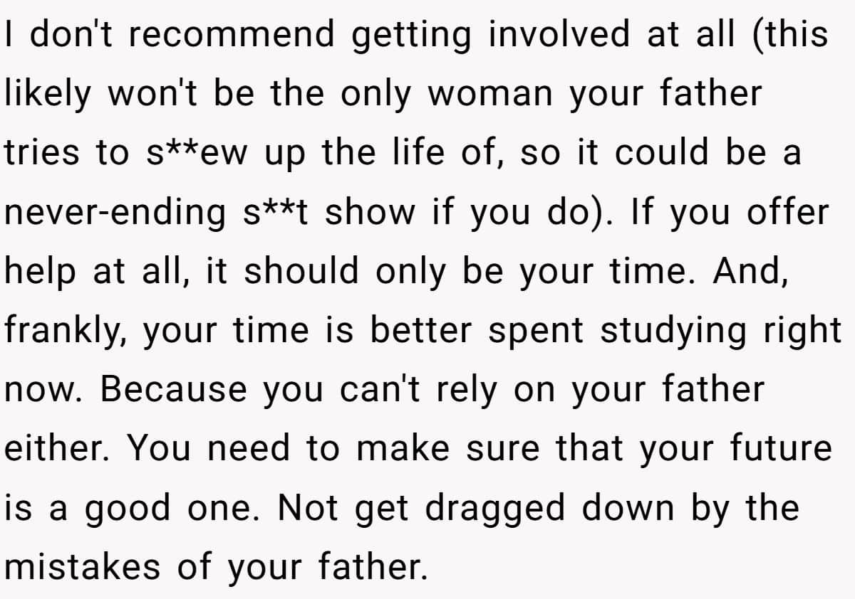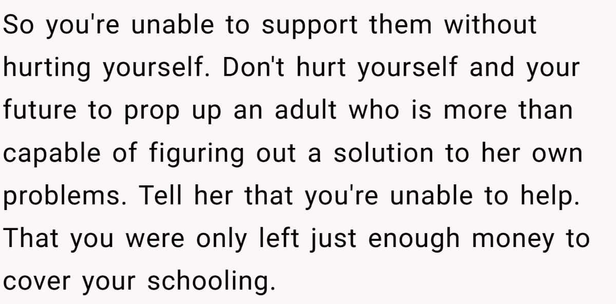 Family financial conflicts are common. A 2022 study in the Journal of Family and Economic Issues found that 25% of young adults face pressure to support family at the cost of personal goals. Stepmom’s reliance on a flaky partner and lack of a backup plan led to her crisis, not the Redditor’s choices. Giving up the fund would force loans, defying her granddad’s legacy.