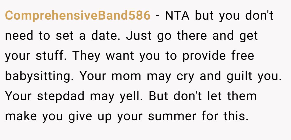 ComprehensiveBand586 painted a pretty clear picture of what might happen next—and urged the Redditor not to fall for it. In their view, the sudden resistance to him collecting his belongings wasn’t about missing him. It was about needing another adult in the house.