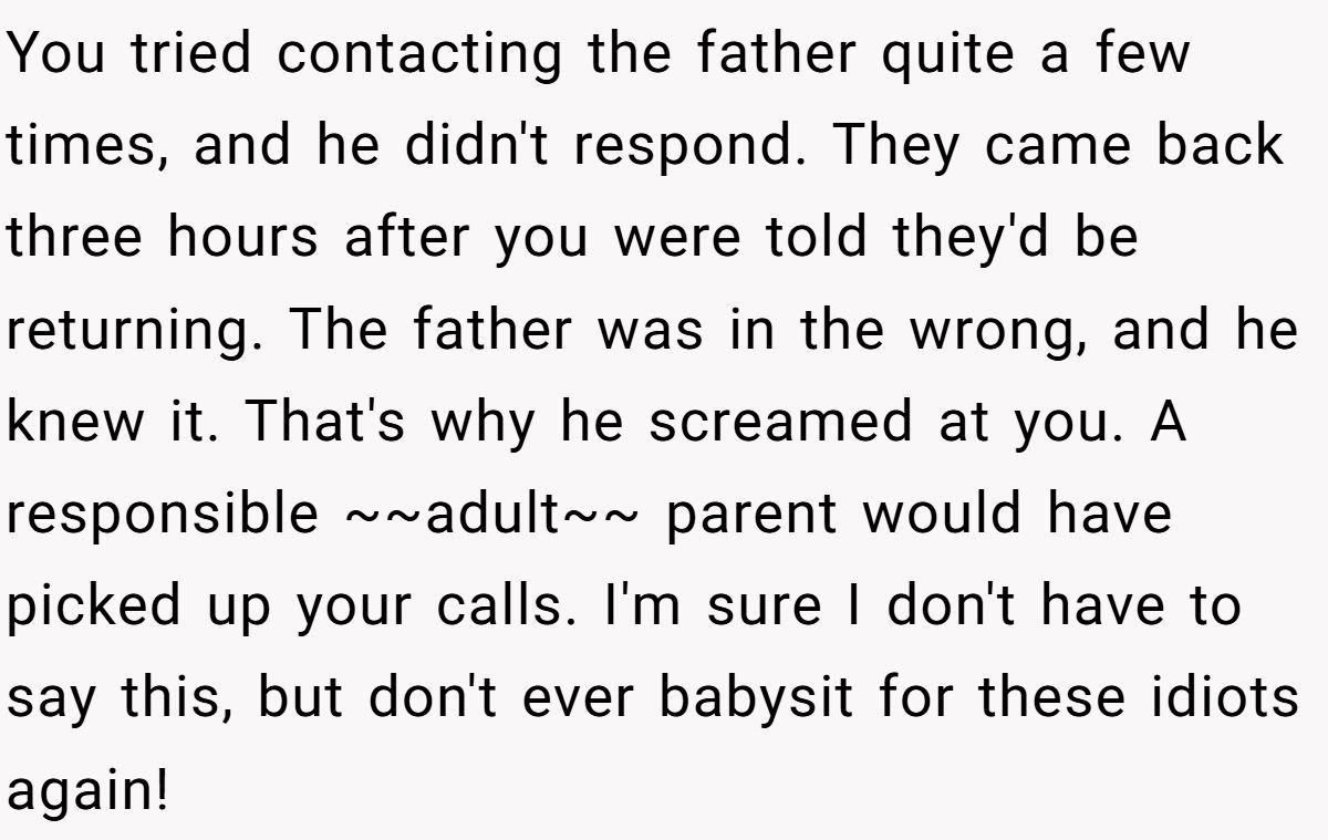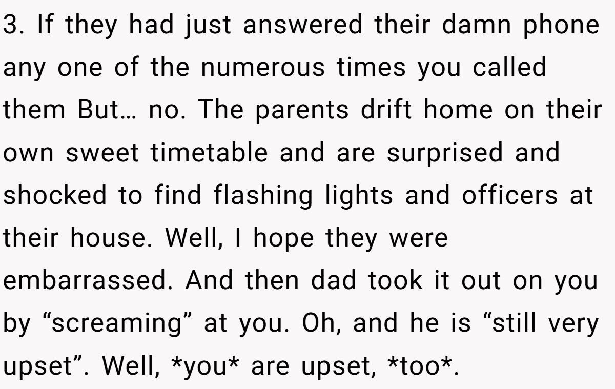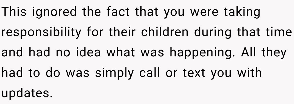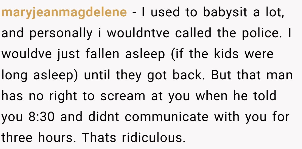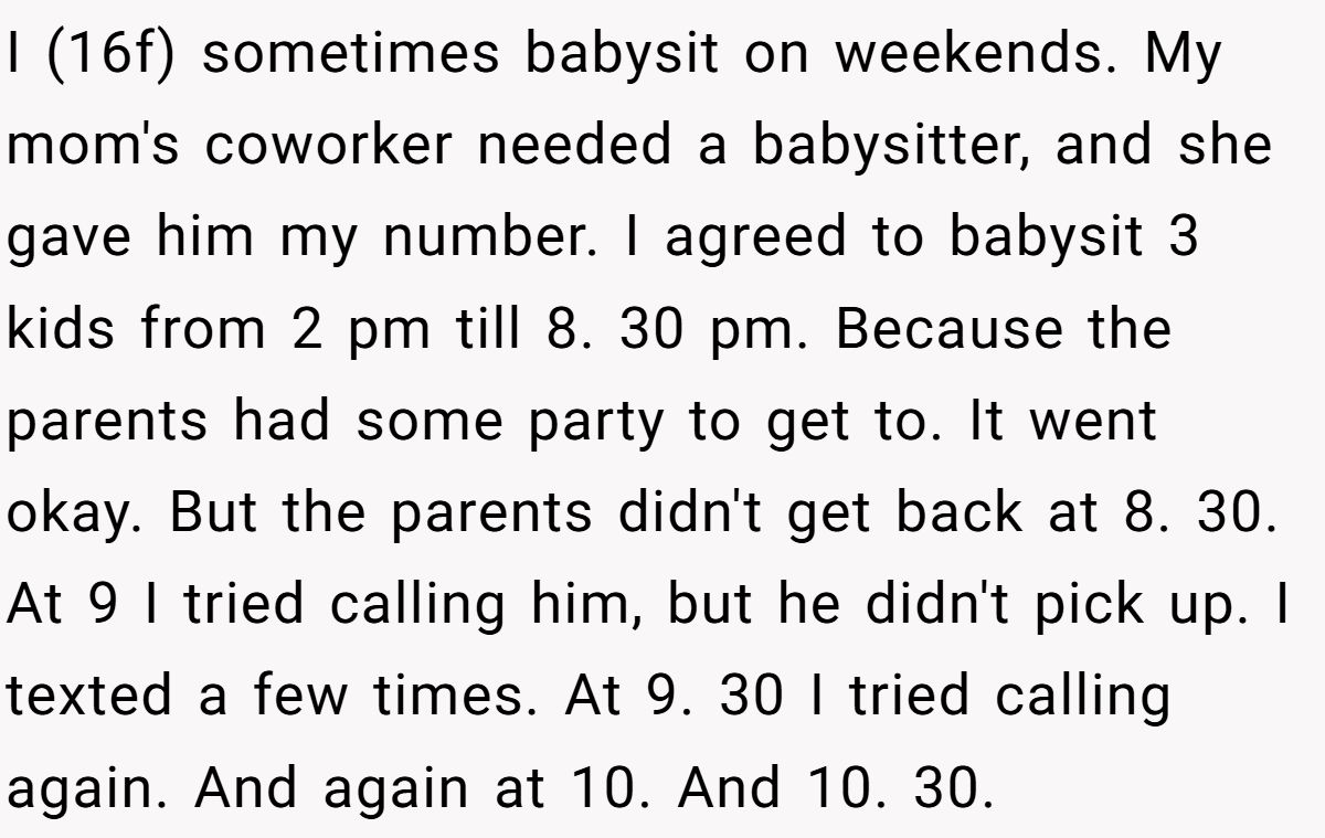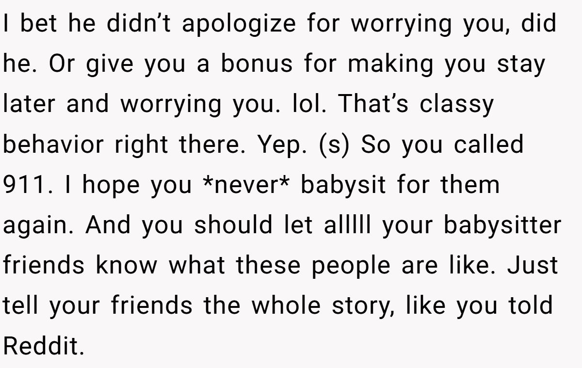 What this post really reveals is the imbalance of power in caregiving relationships. It’s easy for parents to dismiss the needs of their sitter, especially a teen, but that doesn’t make it okay. In fact, as many Redditors pointed out, if the roles had been reversed and it was a teen child who went missing without updates, those same parents would’ve called the police instantly.