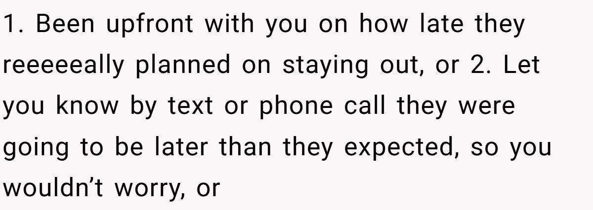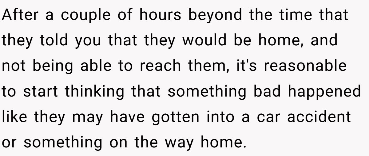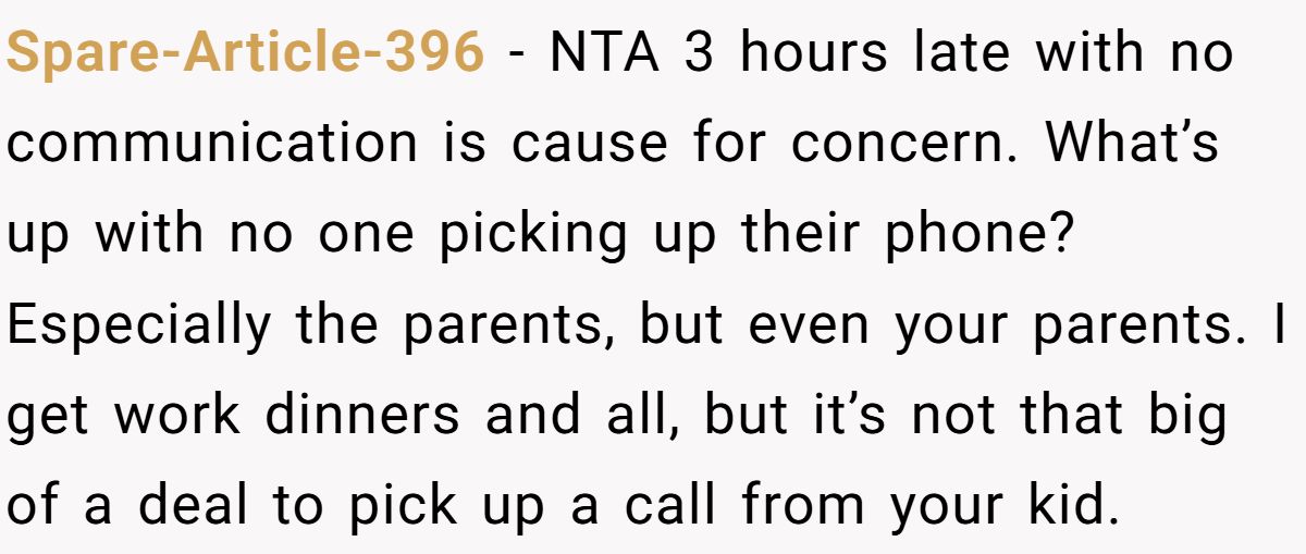 This commenter pointed out that all the drama could’ve been avoided if the parents had simply sent a text or answered their phone.