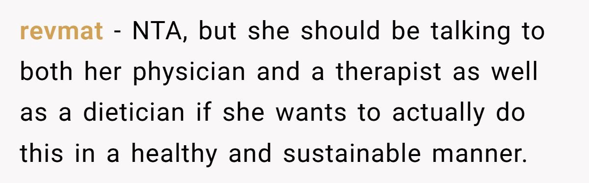 Professional support, like a therapist or dietitian, could help Lucy manage her diet healthily. The Redditor should also ensure her son feels free to eat without guilt. How do you balance supporting a teen’s health goals with maintaining family harmony?