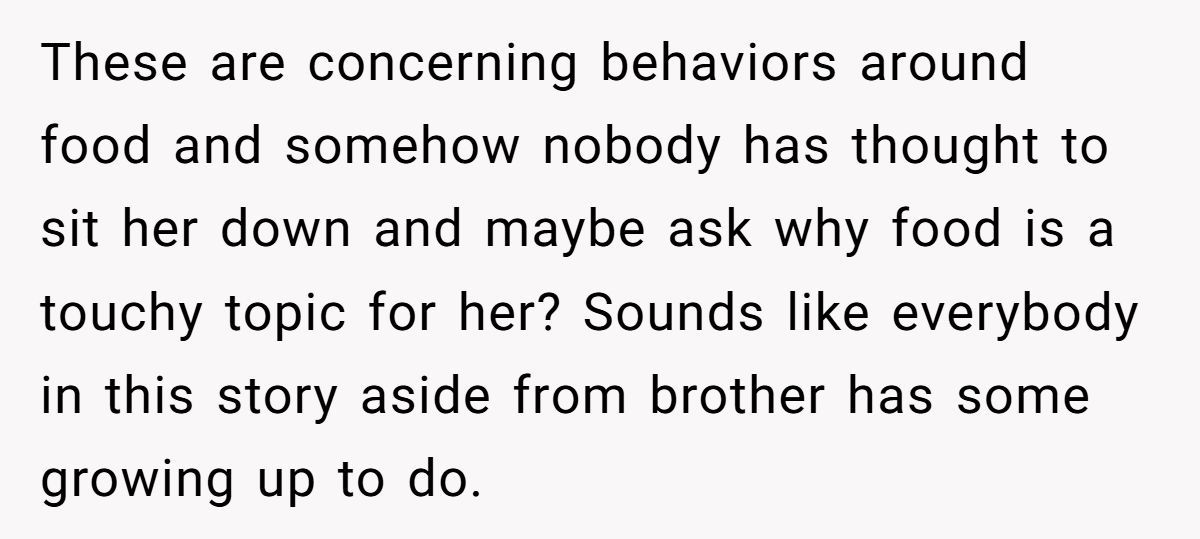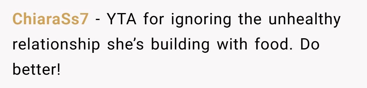 The Redditor’s frustration is understandable, but her tone overlooked Lucy’s potential emotional vulnerabilities, which could signal an unhealthy relationship with food.