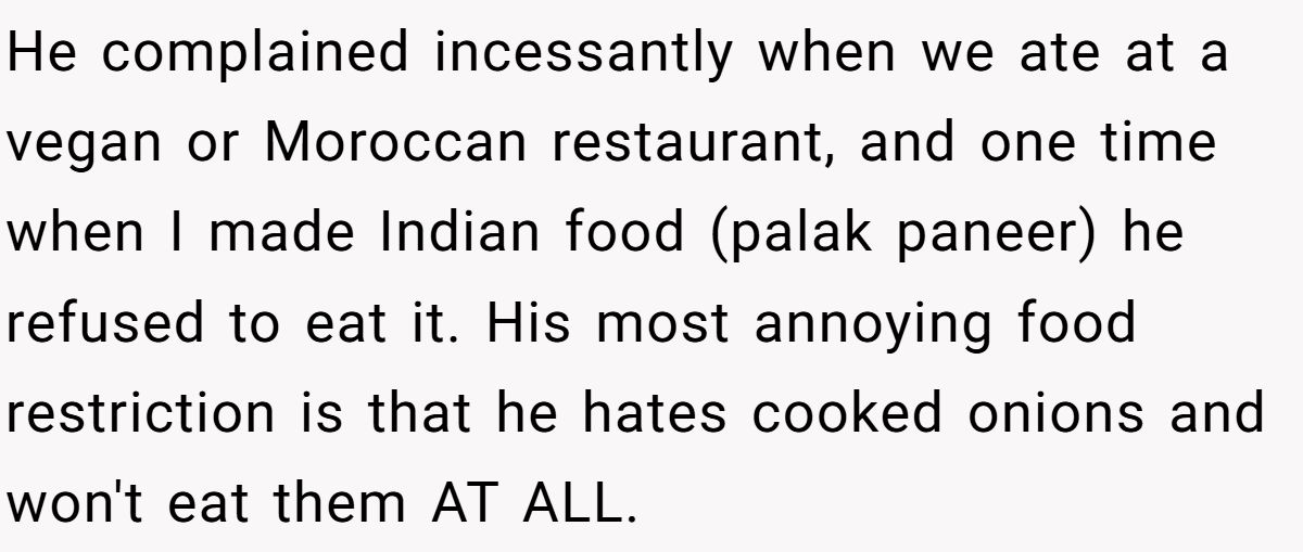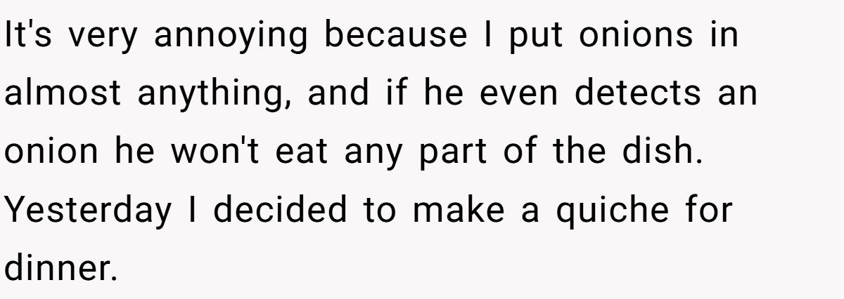 Food fussiness may seem like a minor quirk, but when it dominates every meal and creates daily tension, it becomes a real social issue. In this Reddit case, a teenager found herself cooking for a cousin whose laundry list of banned ingredients would make Gordon Ramsay weep. Onions were the dealbreaker. So she chopped them fine, snuck them into dinner, and told him only after he’d praised the meal.