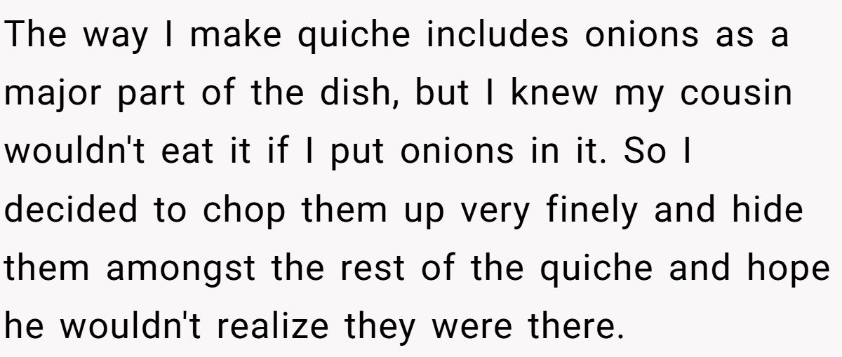 One teen shared on Reddit how sneaking onions into her picky cousin’s quiche led to a family feud and accusations of poisoning