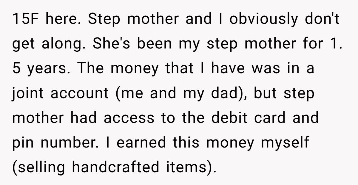 Teen Moved Her Money To A Different Account After Stepmom Threatened To Take Them From Her