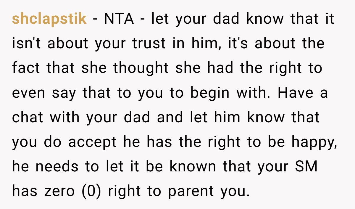 Some criticized the stepmother’s threat, labeling it inappropriate and controlling