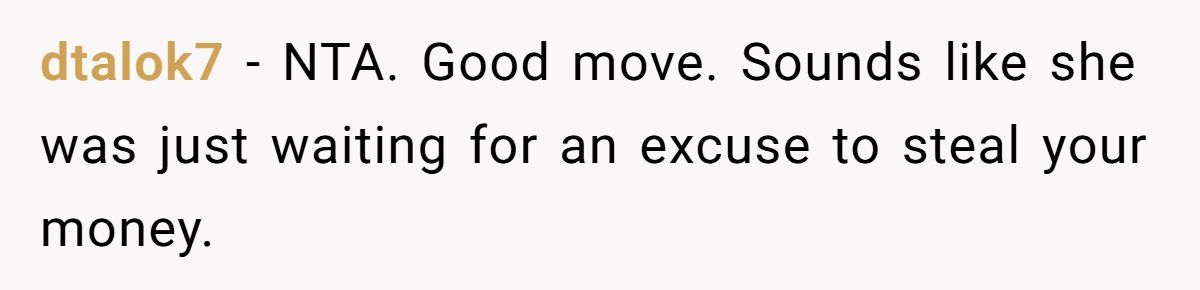 These users supported the Redditor’s decision, declaring her not the jerk for moving her money