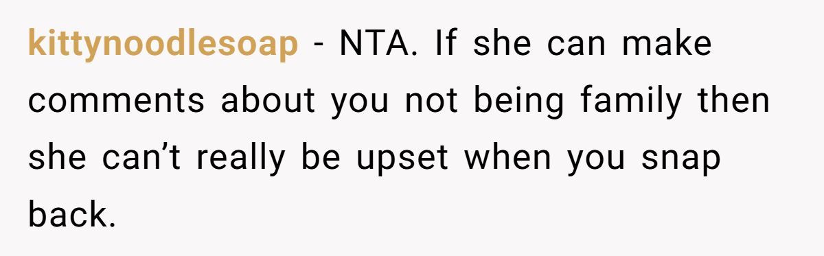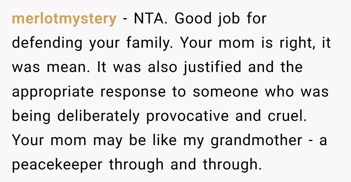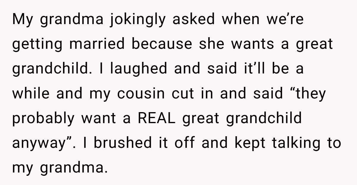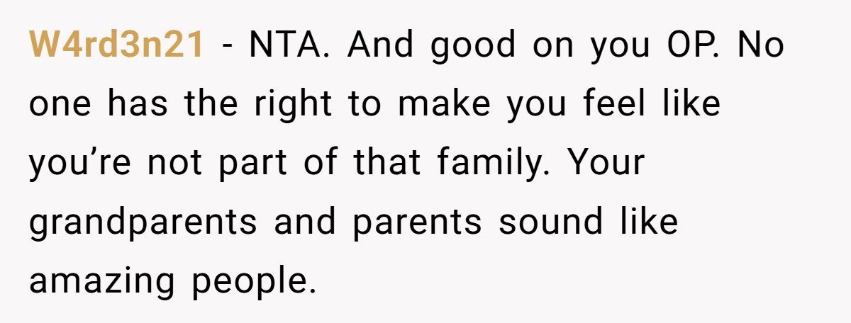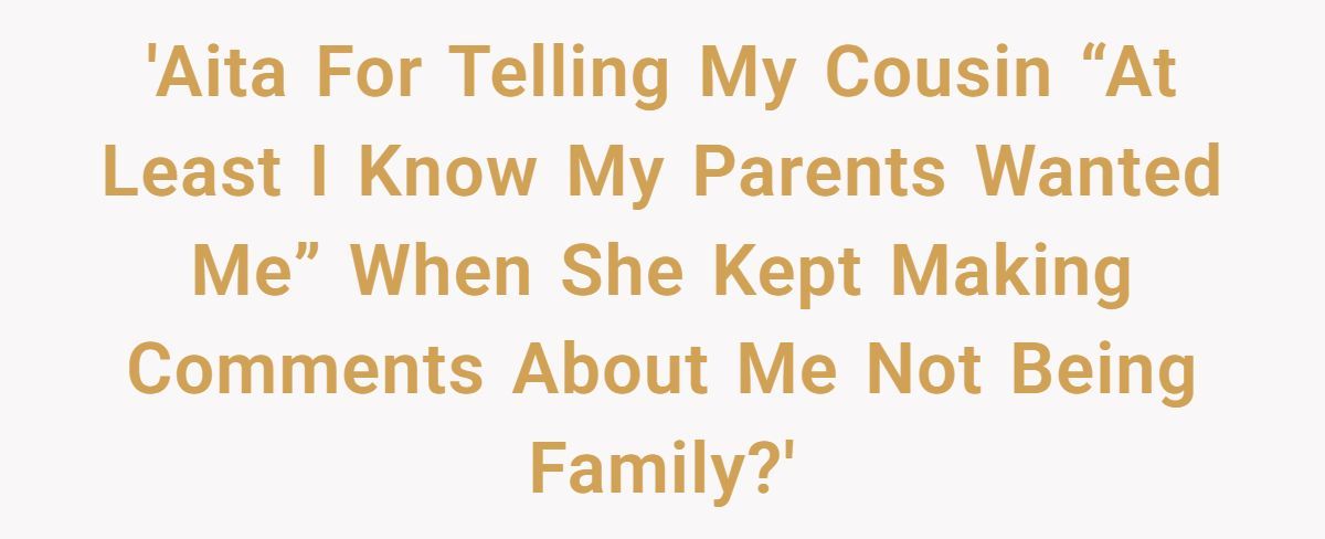 But was the clapback—“at least I know our family wanted us”—too much? Not necessarily. Harsh? Sure. But sometimes truth stings. And let’s be honest: this wasn’t unprovoked. The cousin had been repeatedly jabbing, poking, and needling the OP until the dam broke.