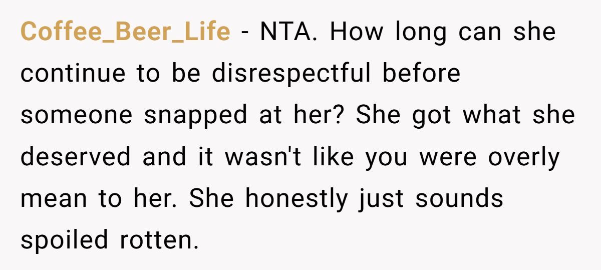 One commenter argued the cousin’s disrespect earned her the sharp retort, calling her “spoiled rotten”