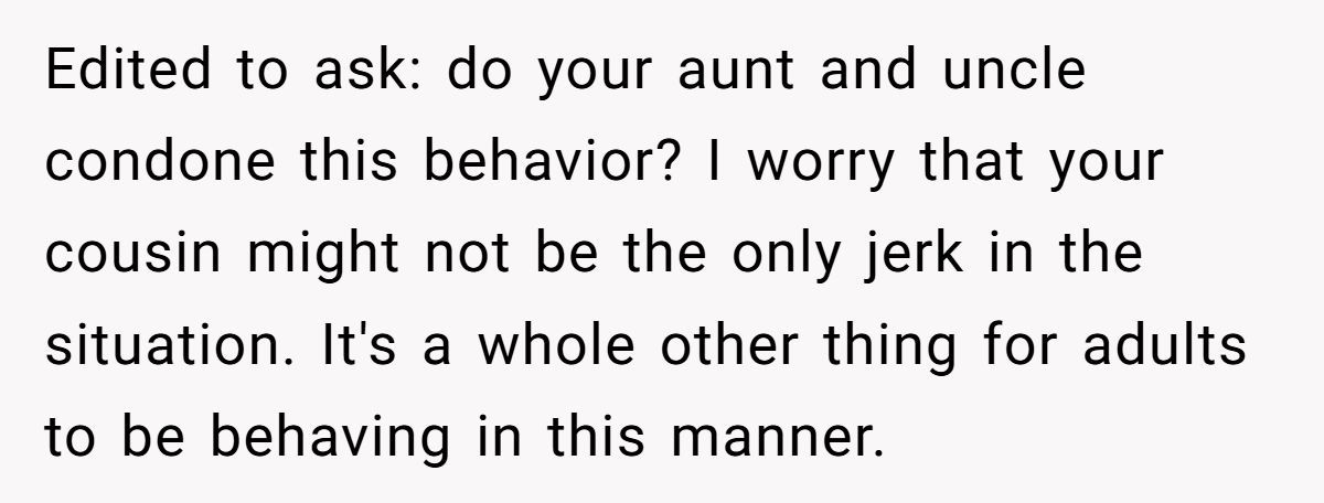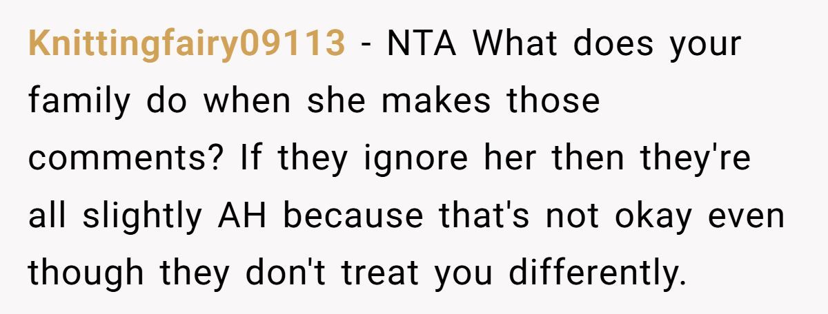 Another questioned if the family’s silence on the cousin’s jabs enables her behavior