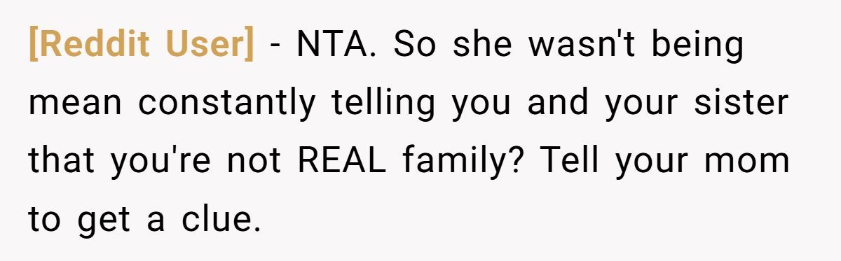 At its heart, this post is about belonging. The Redditor’s cousin, clearly envious over being outshined academically and emotionally, resorts to a cruel narrative: “You’re not real family.” What makes this even more piercing is the emotional harm it risks inflicting on the younger sister, just four years old, who began crying during the outburst. Jealousy might be human, but turning it into identity-based bullying is not only toxic—it’s dangerous.