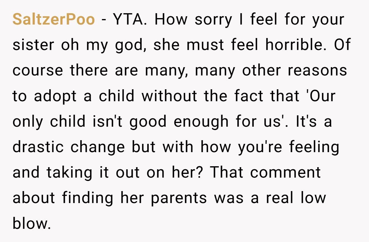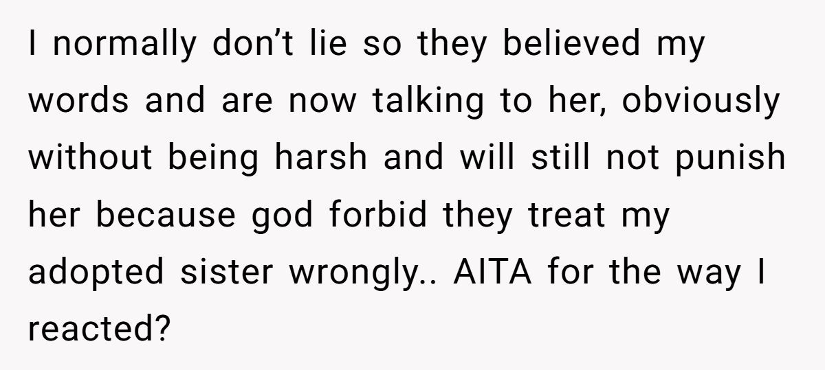Do you think the OP was lashing out in pain, or did she cross a line too sharp to forgive? How should parents help bio and adopted siblings build real bonds? Share your thoughts—we’re listening.