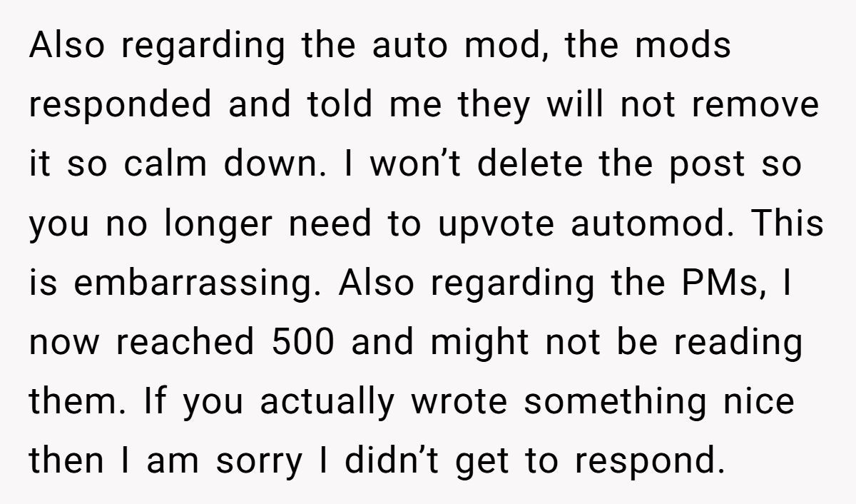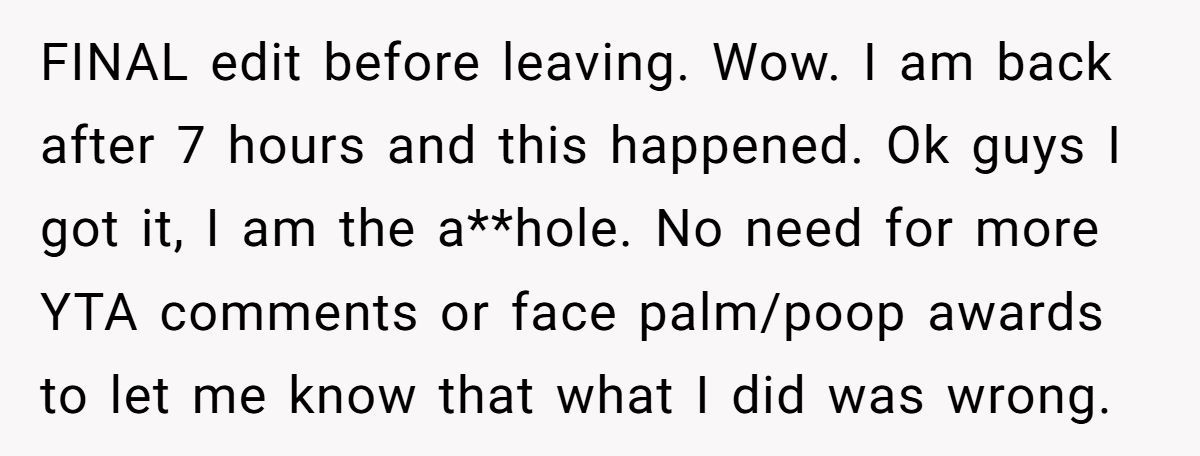 After reading all the comments of other Reddit users, OP edited the post to leave some final words
