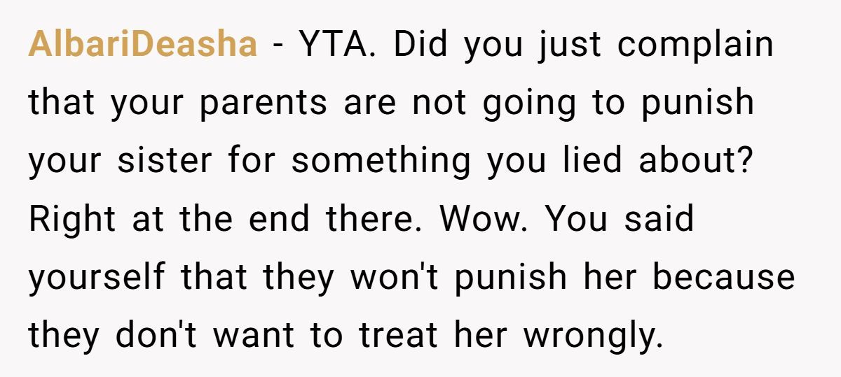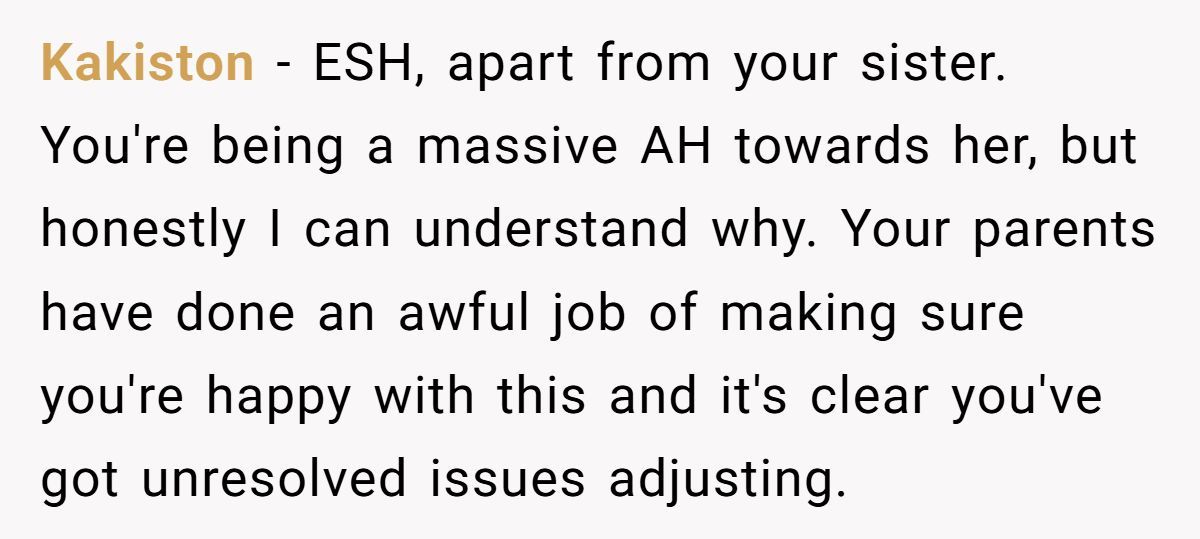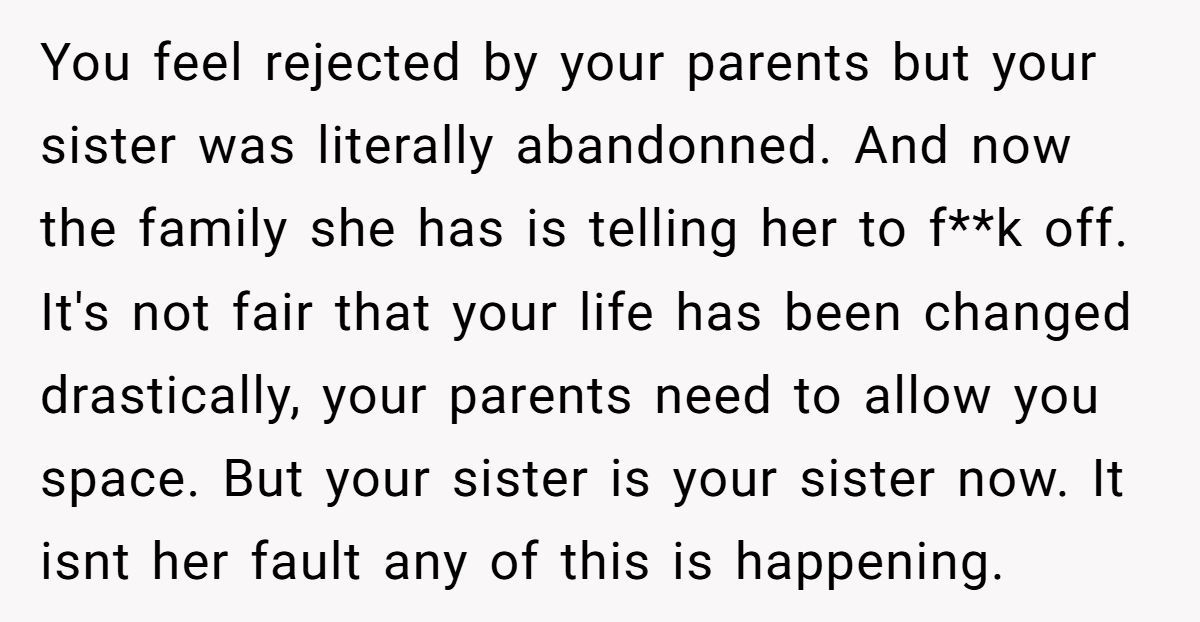 These commenters claimed the OP’s words were harsh and unfair, advising them to show empathy to their sister