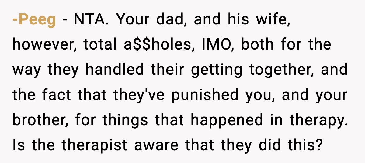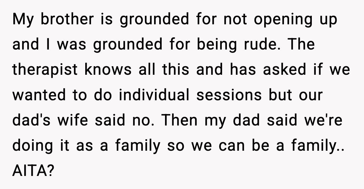 With her older brother silently stewing and therapy meant to bridge the gap, the brave teen finally broke the silence. But instead of being met with compassion, her dad and stepmom flipped the script—punishing both kids for how they did or didn’t express themselves. That’s when the internet collectively facepalmed.