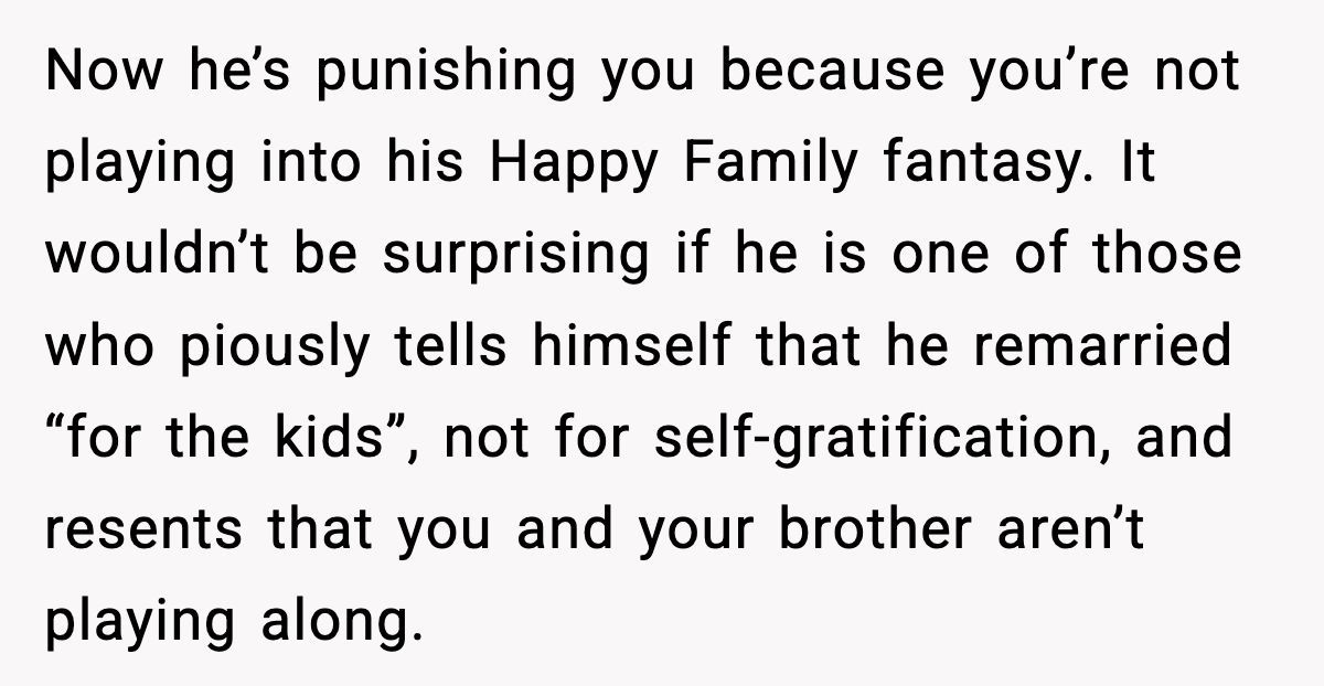 A commenter criticized Dad’s “happy family” fantasy, urging him to listen
