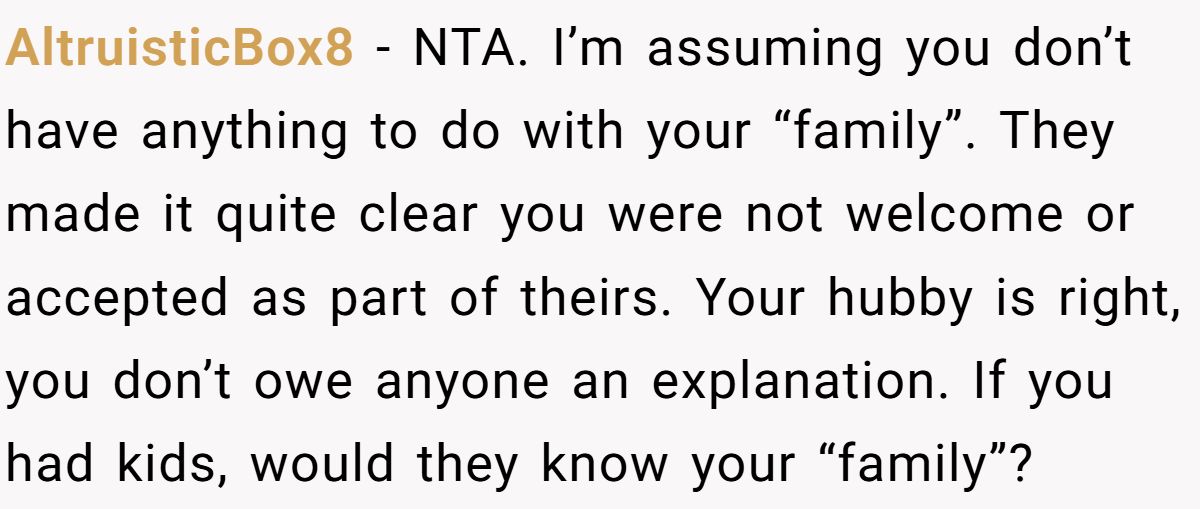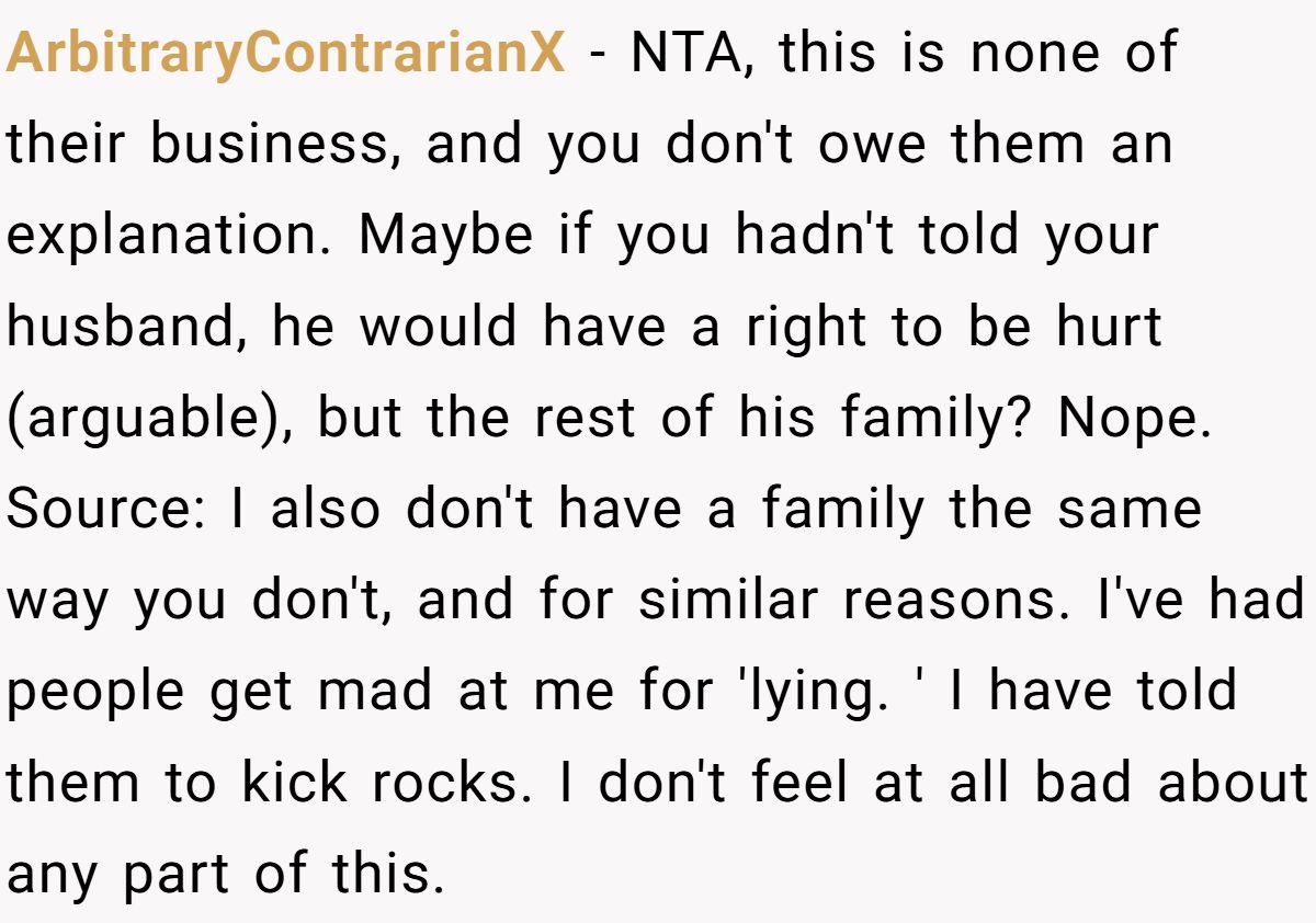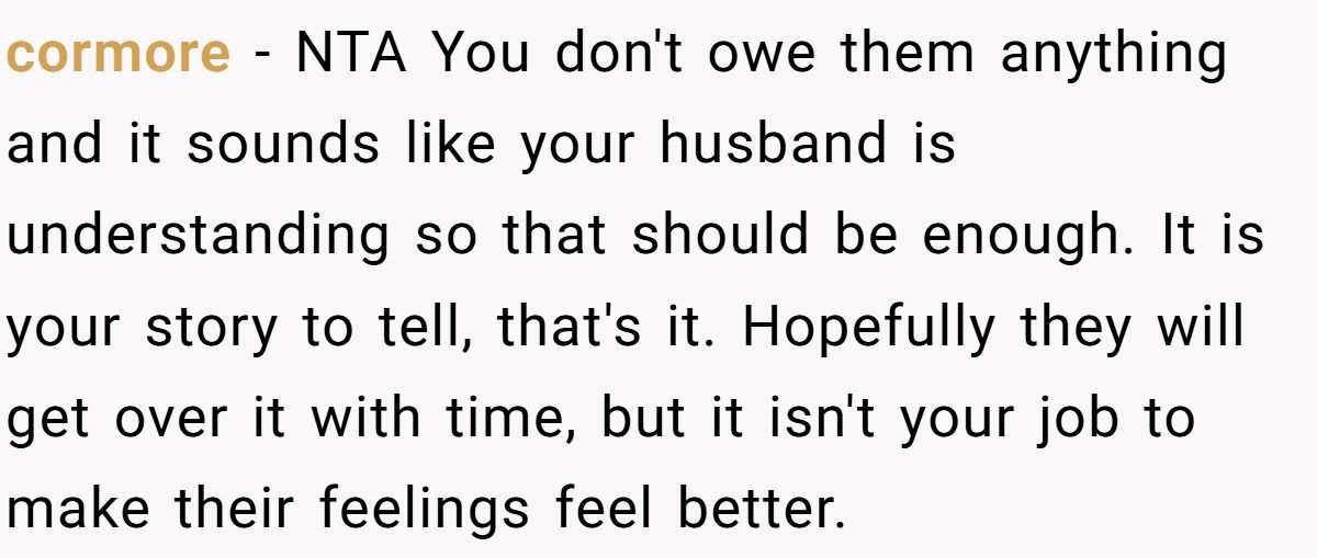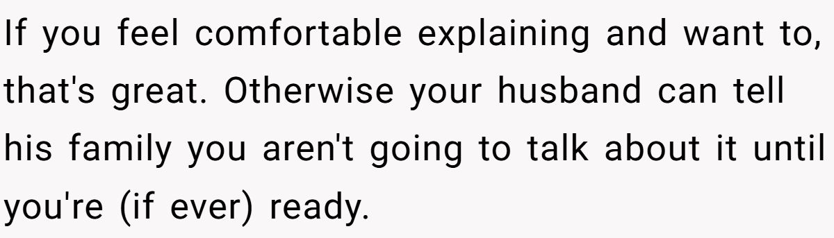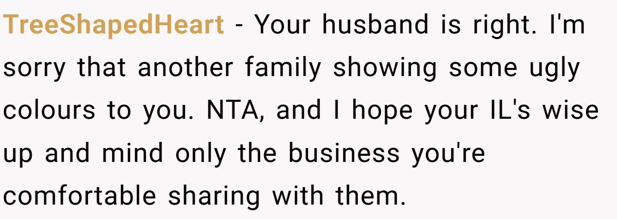 Some Redditors shared more nuanced reflections, recognizing her right to privacy while understanding why her in-laws felt blindsided: