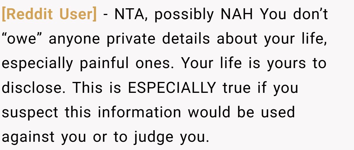 ![The Secret She Thought Was Buried Forever - Until Her Friend Exposed Everything [Reddit User] − NTA, possibly NAH You don’t “owe” anyone private details about your life, especially painful ones. Your life is yours to disclose. This is ESPECIALLY true if you suspect this information would be used against you or to judge you.](https://dailyhighlight.com/wp-content/uploads/2025/07/43123-20.jpg)