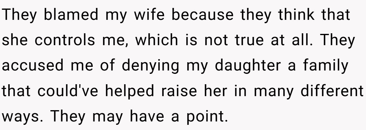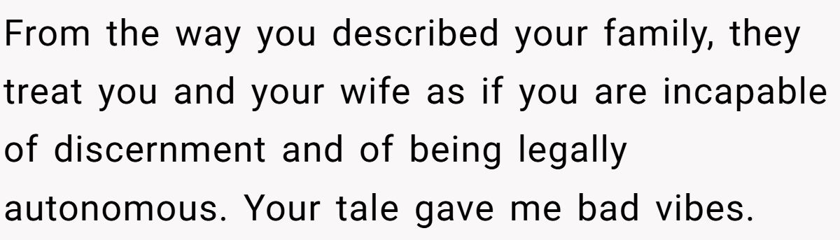 Within days, the calls began. Relatives demanded explanations. Some were hurt. Others were furious. A few insisted the wife had forced this secrecy, calling her “controlling” and “manipulative.” The most painful accusations came from those who claimed the couple had robbed their daughter of a “big family.”