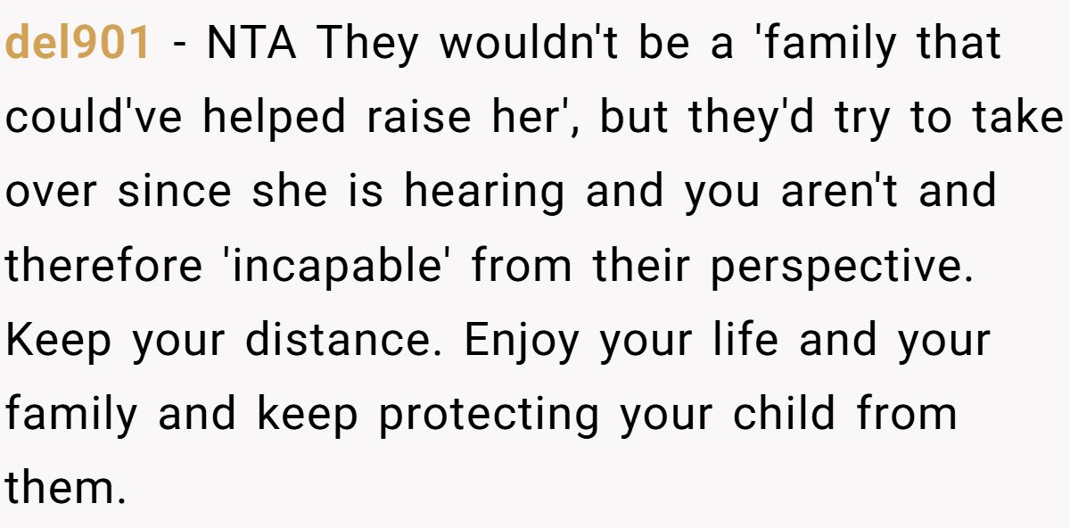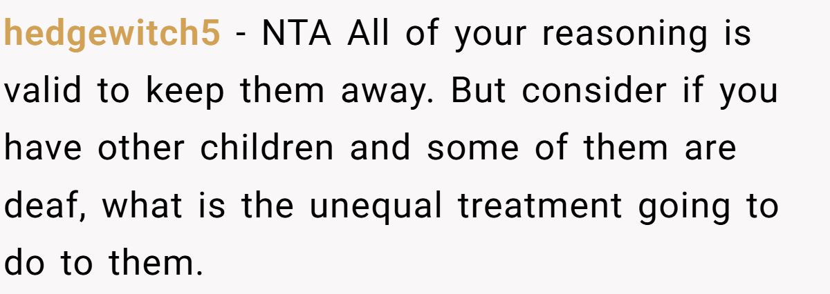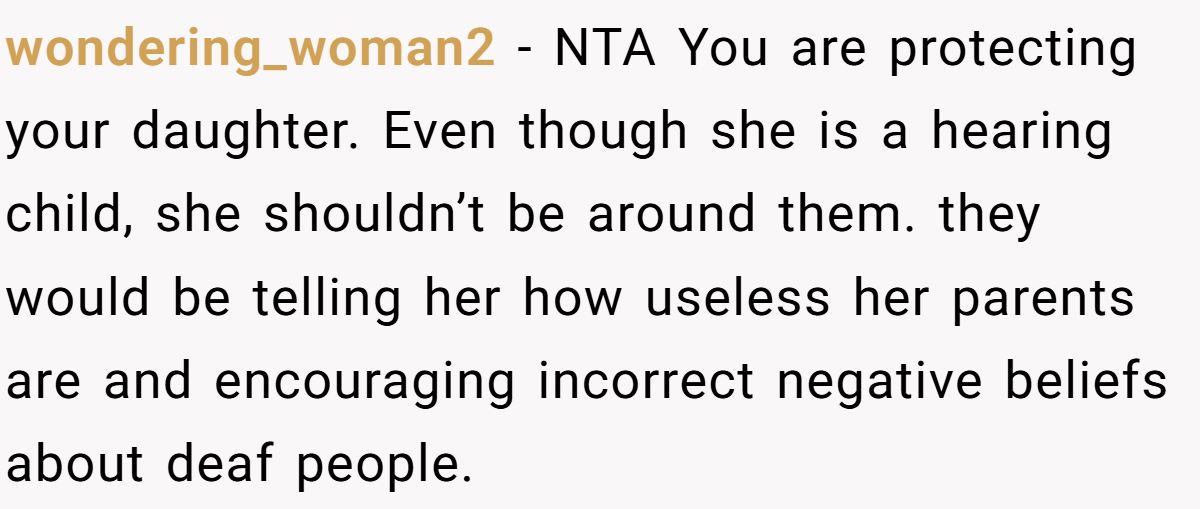 Many commenters applauded the couple for standing firm, stressing that protecting their daughter from toxic attitudes, and possible favoritism if future children were deaf, was the right call.