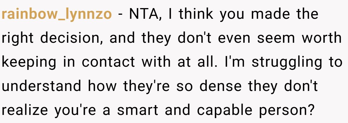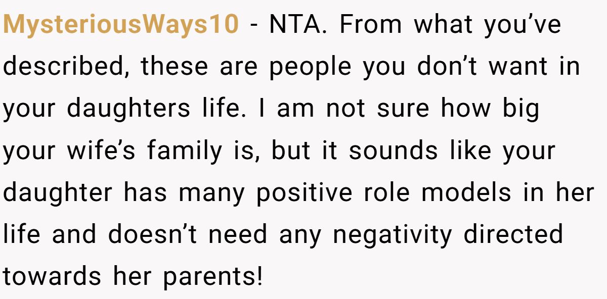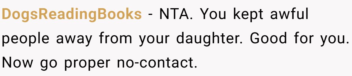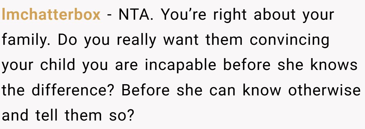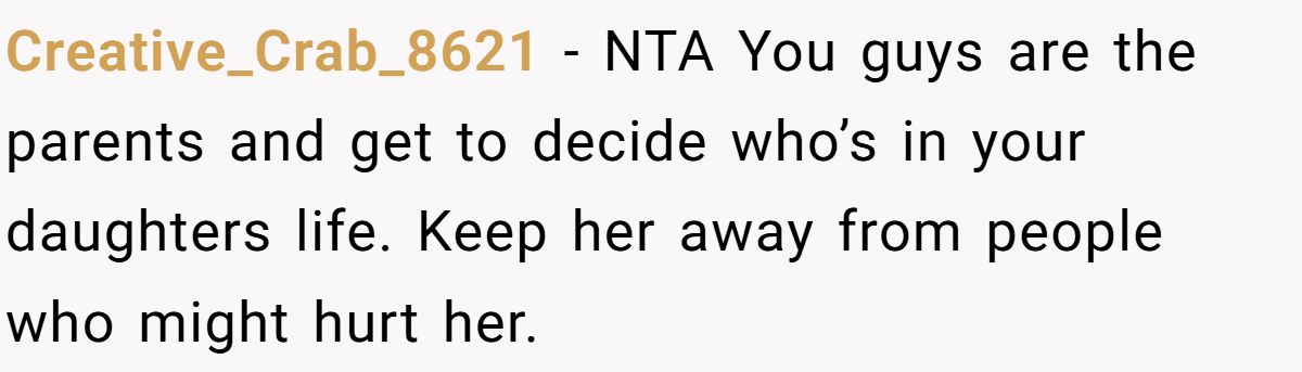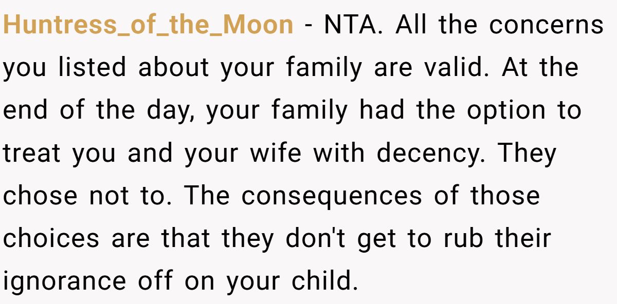 Others agreed the couple was right to keep their distance, warning that family like this could do more harm than good, especially to a child still learning who to trust.