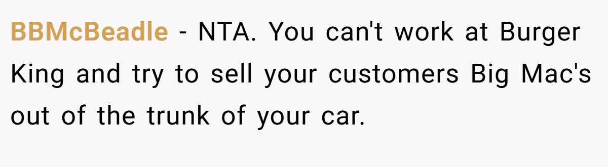 This Redditor didn’t hesitate to call it out for what it was—Sam wasn’t just breaking a rule, she was running her own business inside someone else’s.