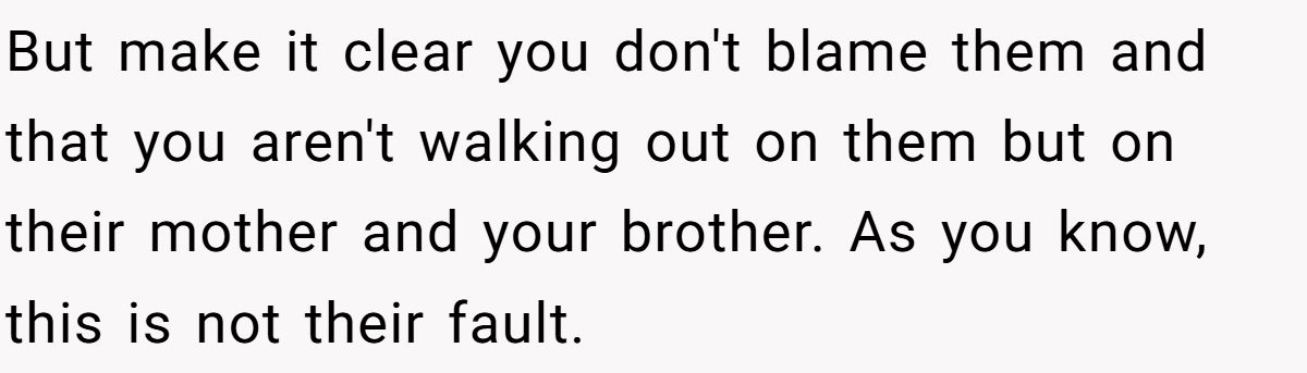 But make it clear you don't blame them and that you aren't walking out on them but on their mother and your brother. As you know, this is not their fault.