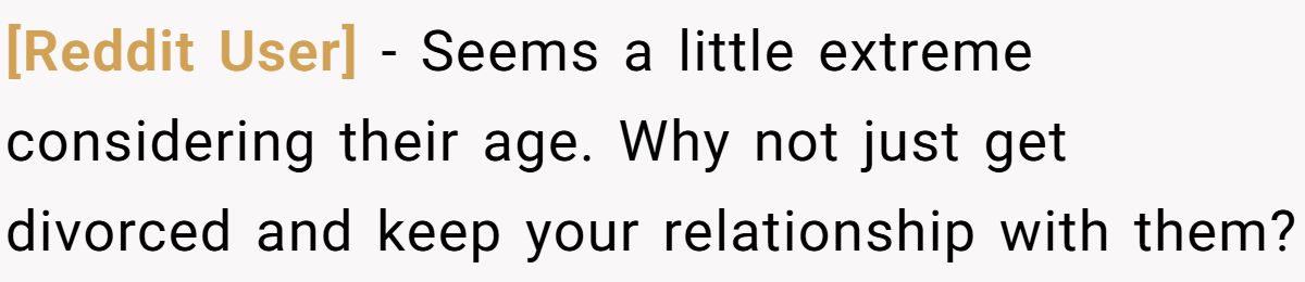 [Reddit User] − Seems a little extreme considering their age. Why not just get divorced and keep your relationship with them?
