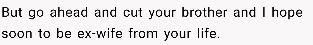 But go ahead and cut your brother and I hope soon to be ex-wife from your life.