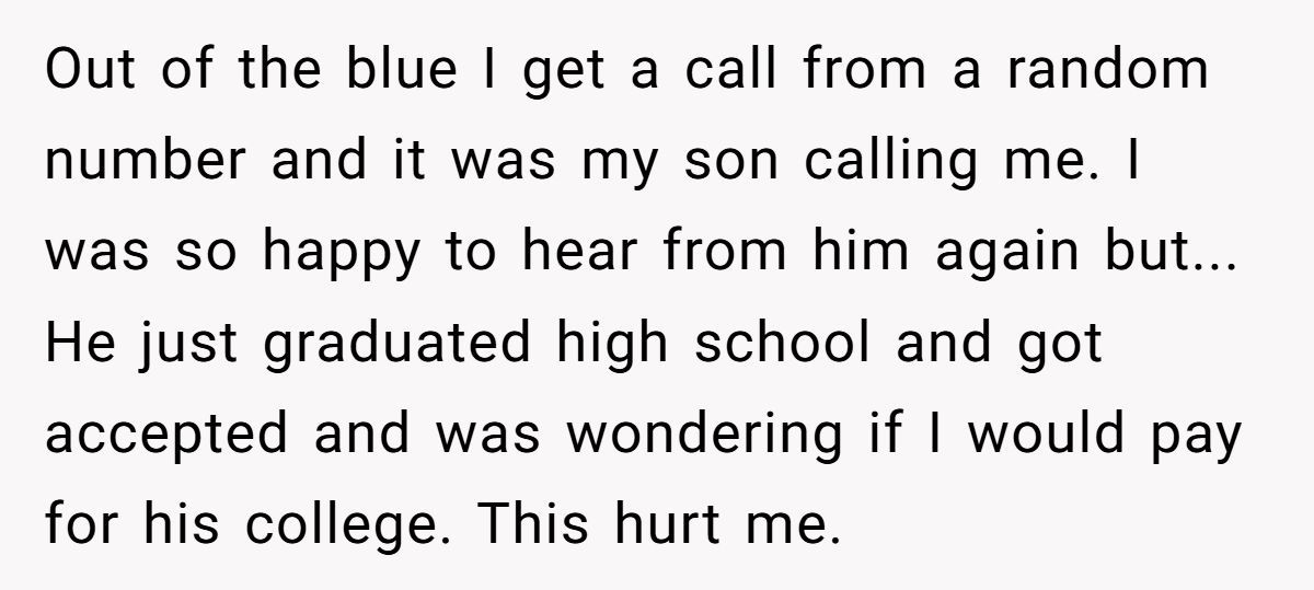 Imagine answering a call from your son—the first in years—and expecting reconciliation, only to realize he’s not reaching out to rebuild a bond. He’s asking for tuition money. That was the gut-wrenching reality for one Redditor, a father in his 40s, who found himself caught between old wounds and a bold request.