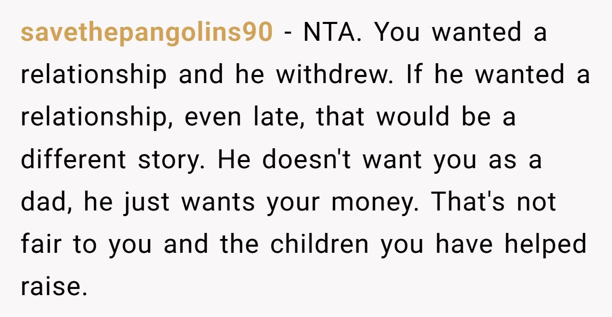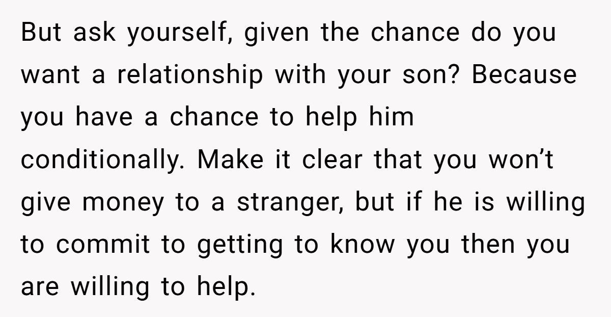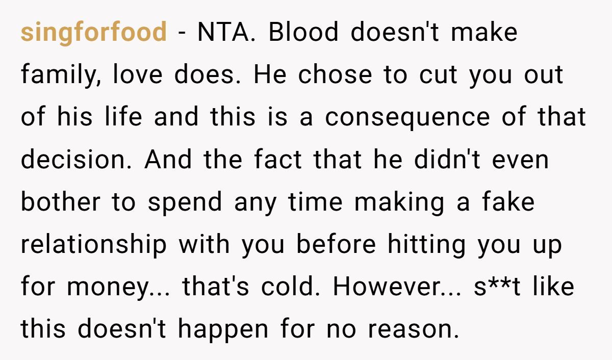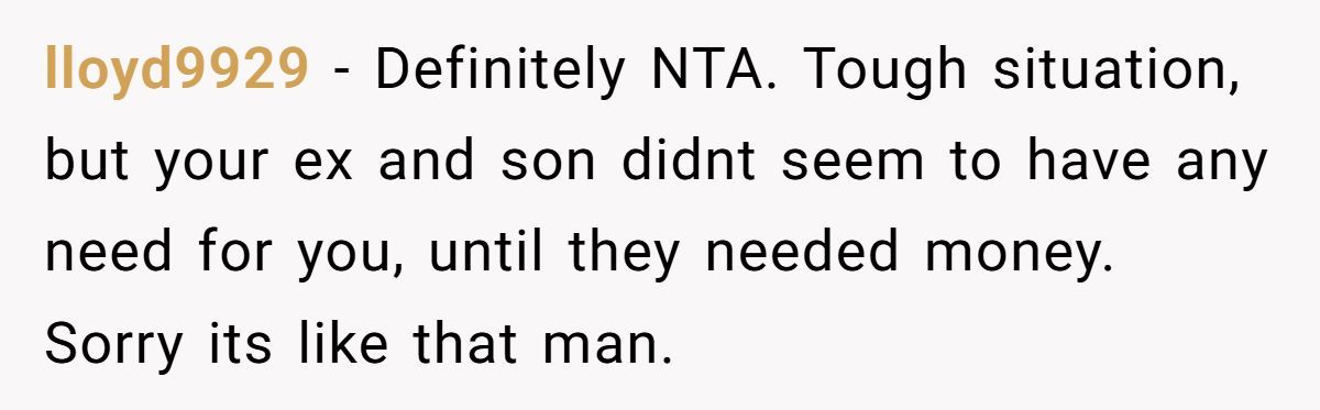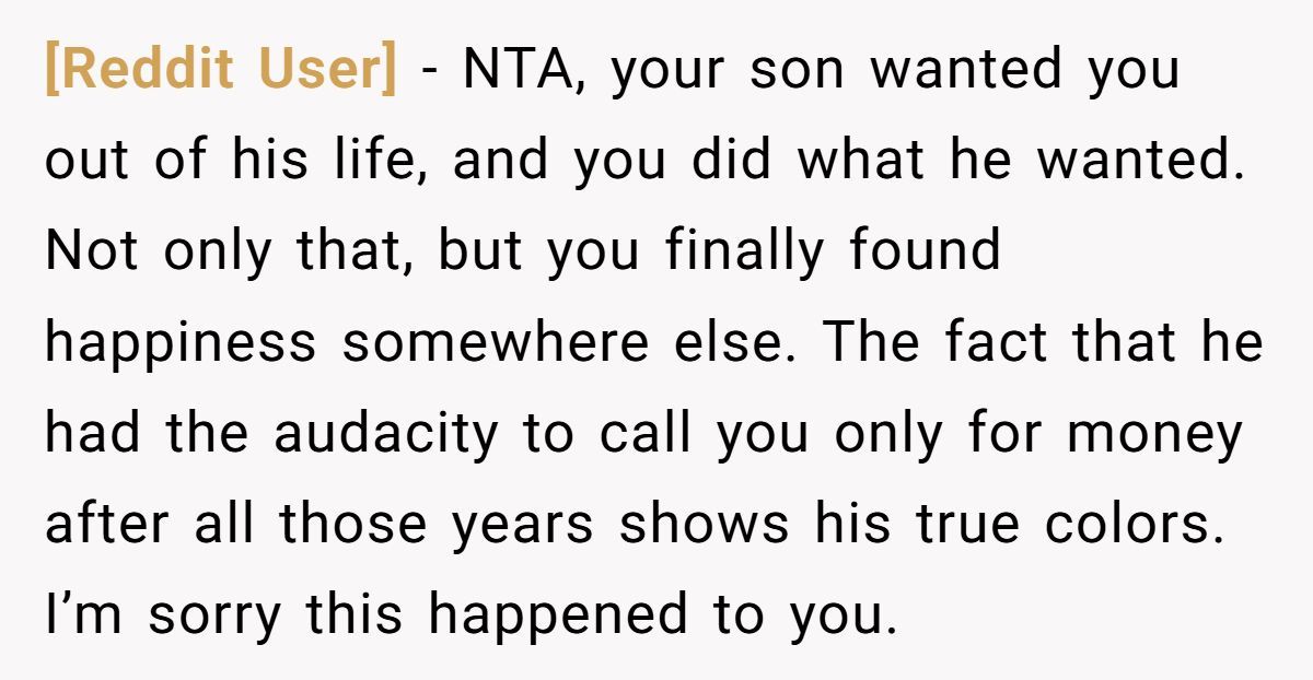 Most commenters agreed OP was NTA, pointing out that his son only reached out for money, not a relationship.