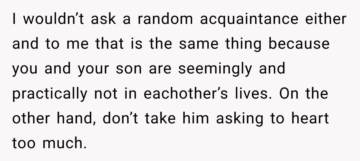 While some Redditors felt OP was right to say no, others urged him to look at the situation through his son’s eyes.