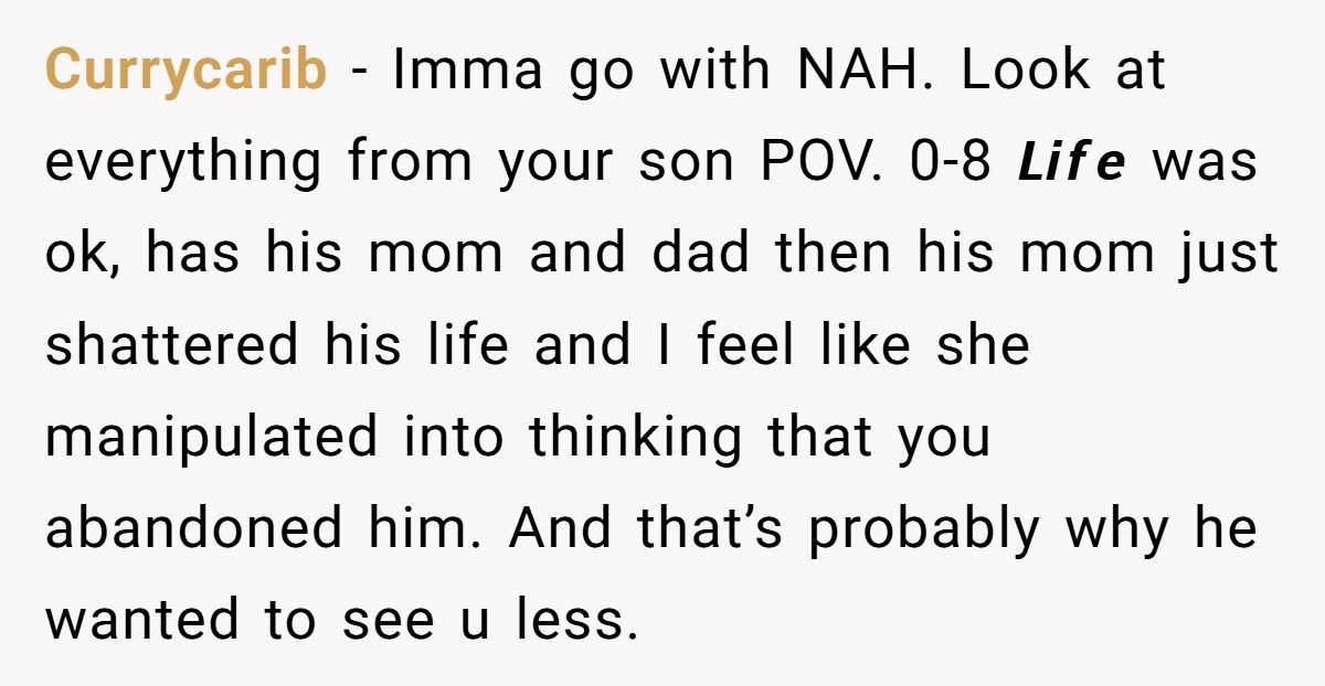 Here, the father had poured time, energy, and love into building a stable life after being sidelined. His refusal wasn’t about being vindictive—it was about refusing to be used by someone who had already written him off.