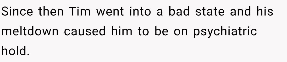 The betrayal cracked something inside him. When he snapped, “I guess you go to jail,” he didn’t know the words would push Tim into a psychiatric hold, triggering a full-blown family crisis. Now, everyone is pointing fingers at him.