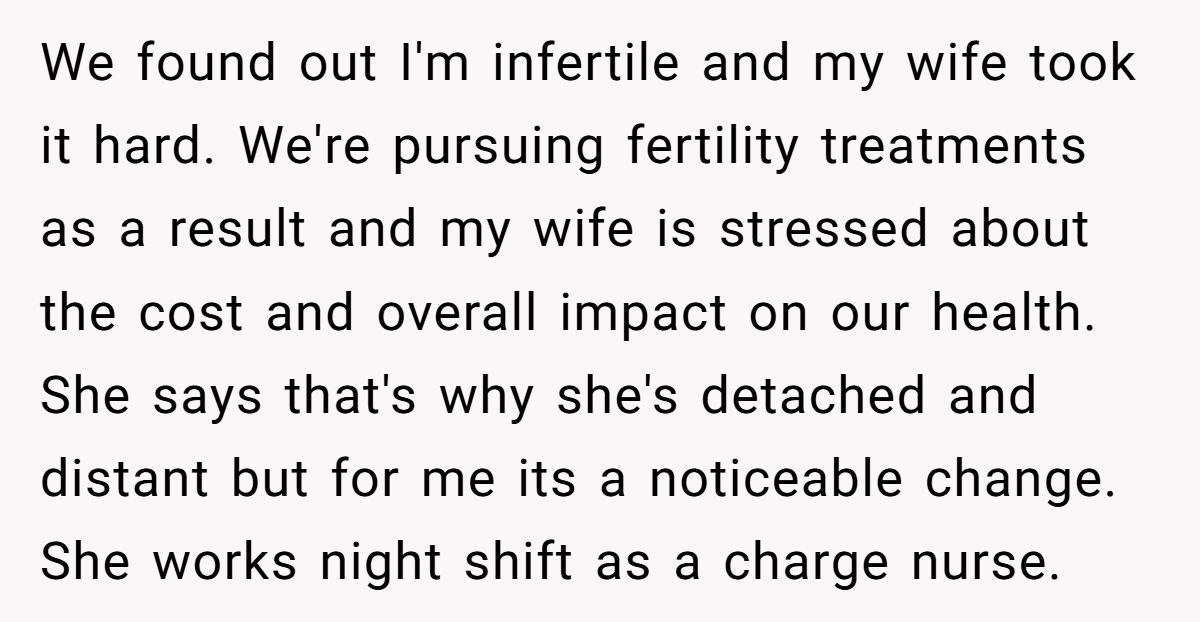 According to Psychology Today, emotional triggers like infidelity trauma often reappear in new relationships, especially under pressure. And this couple isn’t just facing job stress, they’re going through fertility treatments, a process known to strain even the strongest partnerships.