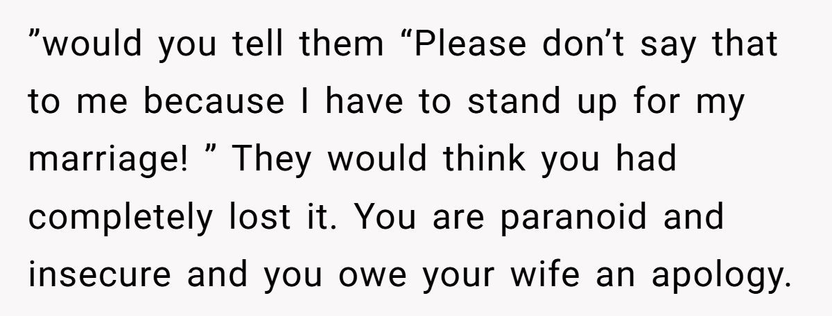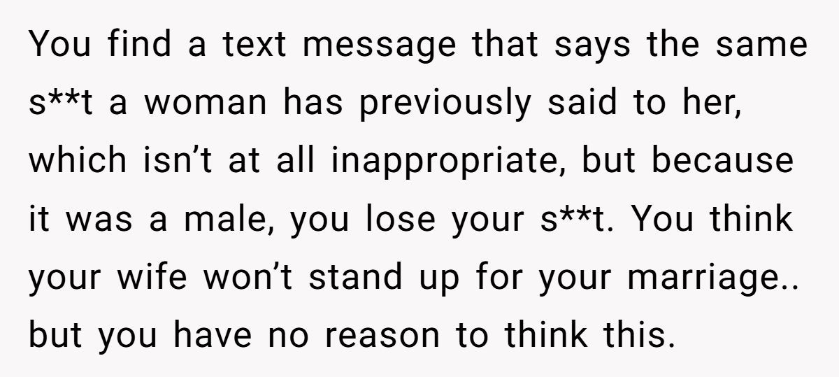 In the end, this post isn’t really about a single message. It’s about how old wounds can cast shadows over new relationships, and how even the nicest compliment can feel like a warning sign when you haven’t fully healed. The Redditor clearly loves his wife, but until he faces his past and addresses his insecurities, he risks sabotaging something good.
